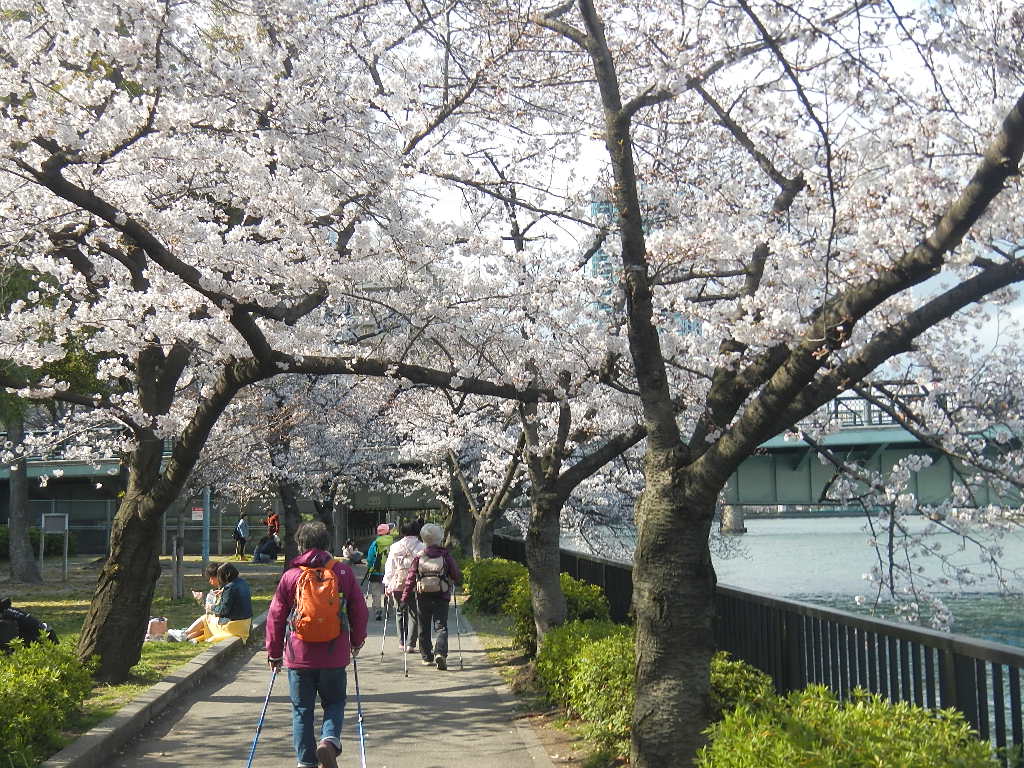 4月1日 桜が咲き出したなにわの街をノルディック・ウォークしてきました。