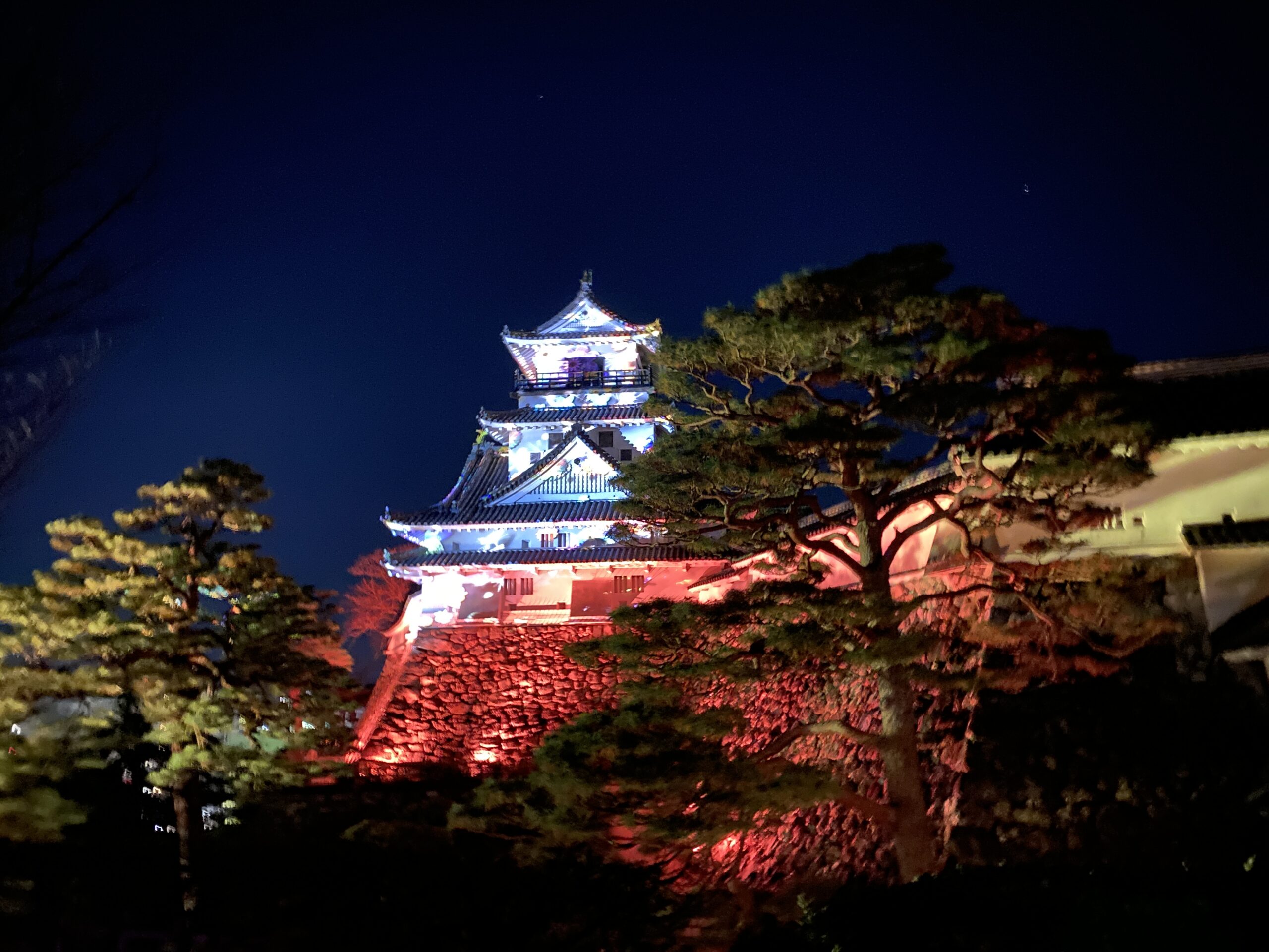 意図せず、今回の設定日に高知城のプロジェクションマッピングのイベントに合わさった為、急遽夜遊びへ