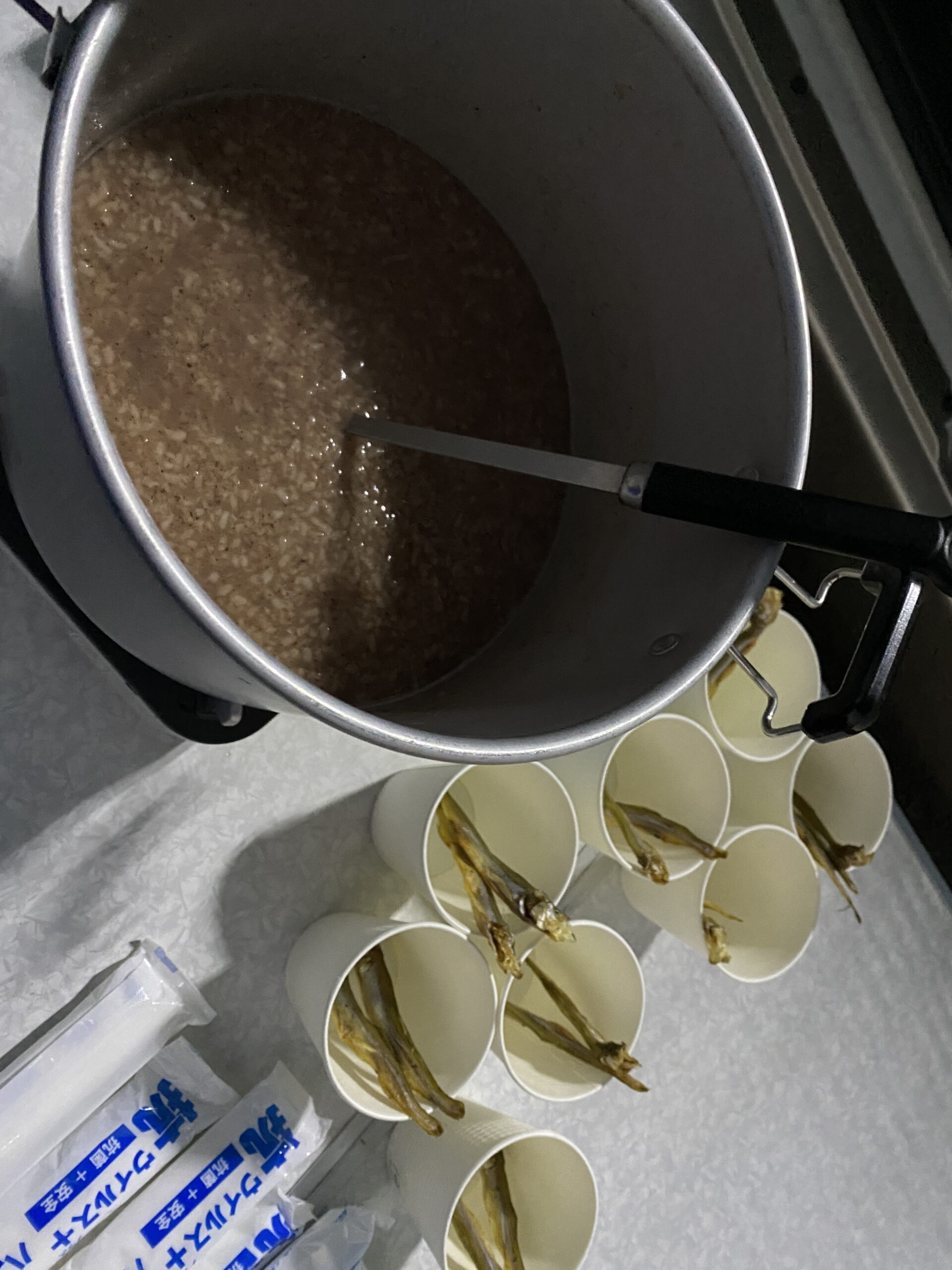 丹後半島の伊根で購入した古代米の赤い酒「伊根満開」の甘酒やお菓子を皆様にお召し上がり頂きました。