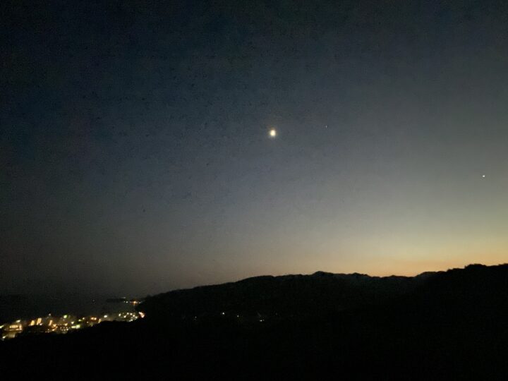 2日目も夜遊びへ。洲本城で夕焼けと星空を楽しみました。